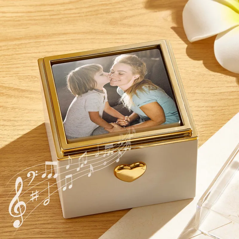 Flip the box around to reveal a beautiful music box that plays your chosen tune – whether it’s a classic melody, a meaningful song, or even your own uploaded audio. Add a treasured photo to complete the experience and make it deeply personal.