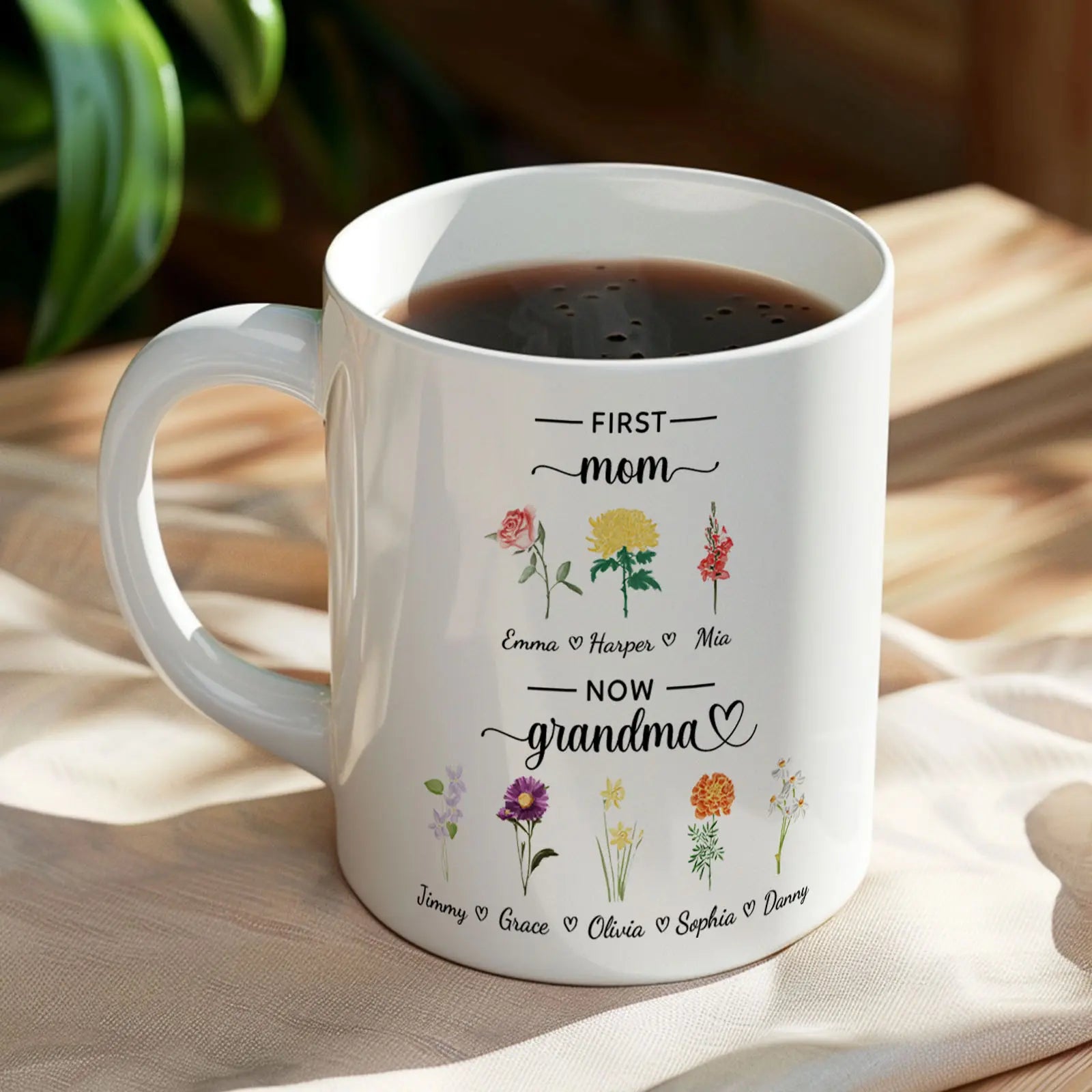 🌸 Elegant Birth Flower Design – Featuring beautiful, detailed floral illustrations, this mug adds a meaningful and artistic touch, symbolizing the uniqueness of each family member.